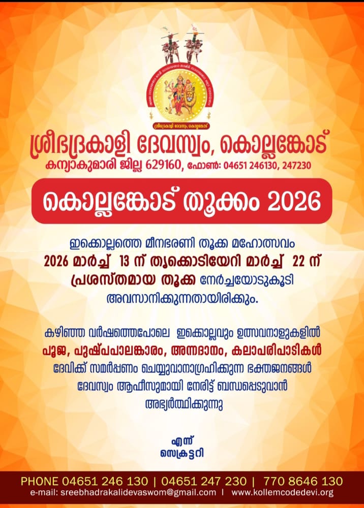 Kollemcode Meena Bharani Thooka Mahotsavam Notice Malayalam